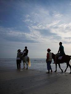 拉玛皇朝,六世皇,决定建造这座宫殿。1080根柚木被运送而来,支撑起了16间高脚的宫殿。鹅黄廊柱,淡蓝墙面,空间特意地阔开去,多引一份光线进来,拂在那些年代久远的陈设之上,竟也生出一种莫名浪漫的情愫来:仿佛是在欧洲的某个避暑小城,舒适惬意的夏宫。宫中流传的也多是闲散的生活情事。不似传统的泰皇宫殿,总关乎着风云。 六世皇将这座宫殿送给自己的宠妃,指望着她能诞下一位继承人。但事不遂人愿,宠妃只诞下了一位公主,六世皇难掩失意,从此避居瑞士,将华美宁静的宫殿和那颗浓情似酒的心留在了华欣。后人称这里是“爱与希望之宫”,游客中,不乏情窦初开的青年男女,带着微小的幸福和愿望,来凭吊那段浪漫。也许,正是从那时起,华欣不再是仅仅传统的皇室度假地,而是饱含着情愫的地方。 初进华欣,小城的清丽让人有些意外。许是刚刚下过一场雨,空气里潮湿的味道正浓,隐隐地带着点海水的腥咸。华欣并不像曼谷,没有迷宫一样的街道和看着地图都未必区分得清的街区。所有的生活格局,都围绕着那一条绵长的海岸线而铺展开来。那些看似通向城市深处的小径,如清晰的毛细血管一般,勾勒一点情调和私密的生活,连一段被主人刚刚摆出来的花枝,都被精心地打理过,还挂着新鲜的雨滴。