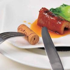 鹅肝是法餐中的一道传统美食,将新鲜鹅肝加入牛奶和红酒腌制12 小时,定型后用小火慢蒸,再撒上一些黑胡椒和海盐,与烤过的全麦面包一起食用。此外,厨师还特意加了一些中式元素,点缀了几颗酸甜可口的山楂糕, 缓解鹅肝的油腻。Joh. Jos. Prum Wehlener Sonnenuhr Riesling Spatlese 2007 表现不俗的酸度同样可以起到解腻的效果,这款饱满并且精致的酒品足够与肥美的鹅肝抗衡,酒中的蜂蜜与槐花香也为这道菜带来更美妙的香甜回味。