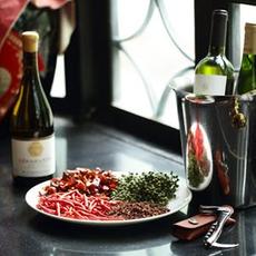清酱肉是便宜坊传承下来的一道老北京秘方。选用精猪肉切成适度的肉块,先用花椒盐腌上7天,然后在酱油中酱8天,最后用清水煮,放凉后切片食用,口感咸香风味十足,适合用稍甜一些的红葡萄酒搭配。而我们选择的这款来自阿根廷的希哈拥有黑色李子和黑莓等浓郁香气,在口中有理想的集中度,虽是干型酒,却因为优质的结构和单宁,给人带来一丝难得的甜润口感,是猪肉的理想搭配。