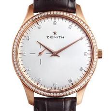 超薄玫瑰金材质表壳直径40毫米,乳白色表盘上有钻石时标、剑形时针和分针、9时位置为秒针附盘。