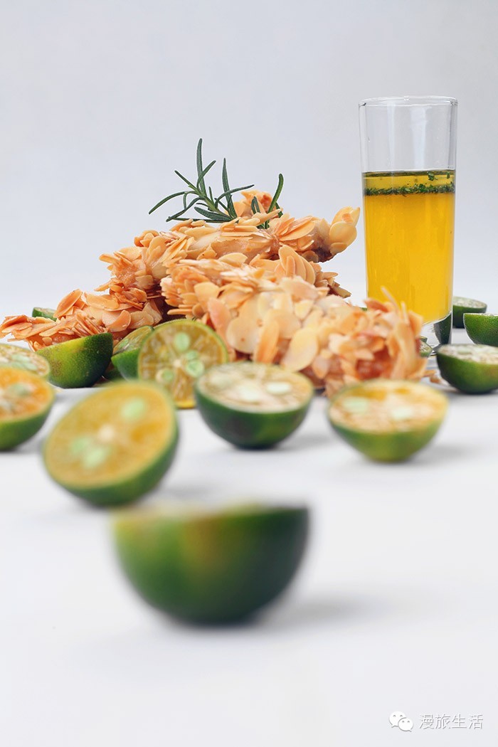 这是一道传统粤菜,又加入些许西餐元素。色泽金黄诱人,外层杏仁片脆香可口,更显鸡肉细嫩。一定得亲手淋上青柠汁,酸酸甜甜的滋味,乐在其中。