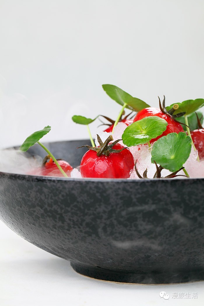清新爽口的有机小番茄在大厨精妙布置后,创作出韵味无穷的诗意空间。烟雾缭绕间虚实相生、活跃律动,如大师的画作,令人不忍下箸。