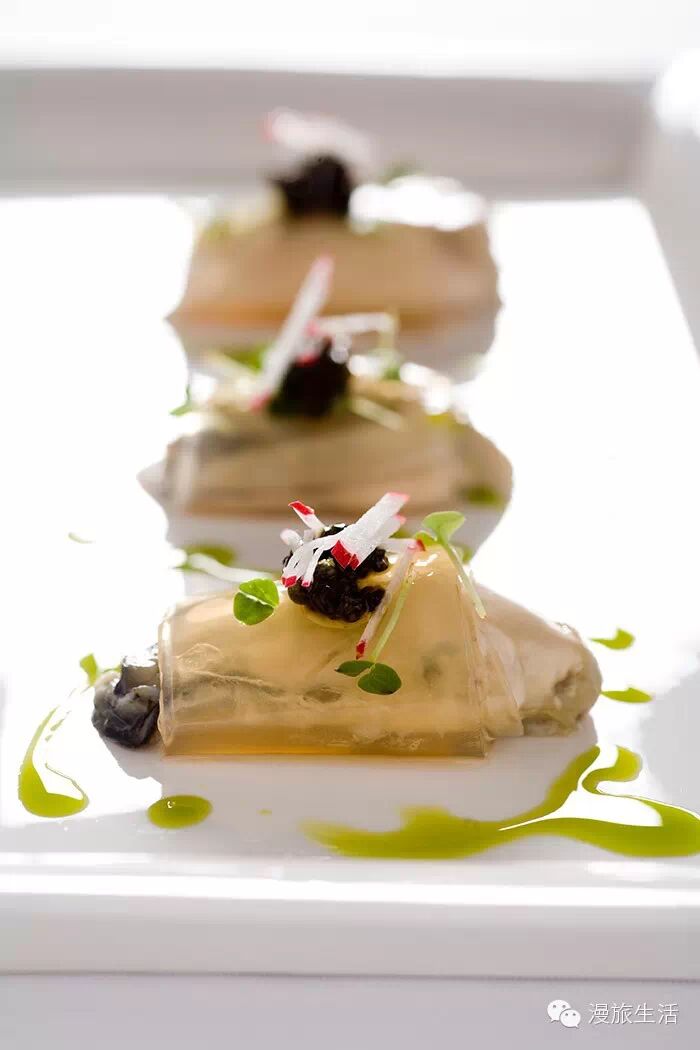 选用进口法国生蚝,为保证生蚝的矿物质成分不流失,特地用矿泉水来清洗。配以纯正干白葡萄酒,浓醇酒香和新鲜海味的甘甜完美交融。佐上优质鱼子酱及微型洋葱苗、莳萝、茴香片的细细调味,层次分明,突显生蚝冻之肥美。
