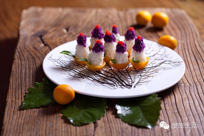 山药口感脆爽,配以金桔熬出的蜜汁,酸甜适度。金橘做底,外微酸、里甜糯,美观且清新开胃。