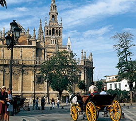 第四天 上午的皇家马德里球场之行应该能让皇马球迷欢呼雀跃,太阳门广场更是充满了雄性激素的斗牛城马德里的中心,从这里有10条街道呈放射状向外延伸。紧接着前往格拉维亚大道自由购物,白塔大楼、米拉多住宅亦在行程之中。午餐过后前往阿托查火车站,搭乘AVE高铁前往塞维亚。历史上塞维亚经济繁荣、文化发达,曾有"小罗马"之称。 第五天 塞维利亚大教堂是今天的第一站,教堂包含了哥特风格、文艺复兴风格和伊斯兰风格元素。内部空间十分宽敞,窗台饰花精致无比。接着参观的黄金塔是塞维利亚的一座十二边形的军事瞭望塔,兴建于13世纪的穆瓦希德王朝,以控制从瓜达尔基维尔河到达塞维利亚的水路,为西班牙珍宝船队定期从美洲带回的贵金属提供安全保护,这也可能是它名称的来源。餐后前往中世纪小镇卡尔莫纳,抵达后入住城堡酒店,随后自由活动,感受小镇复古魅力。 |
